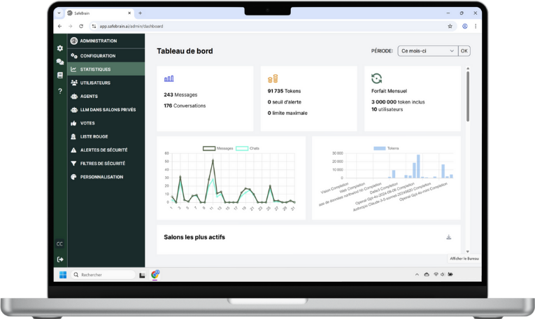 Avec SafeBrain, vos données restent souveraines et confidentielles. Hébergées en France dans un environnement certifié SecNumCloud et ISO27001, vos informations restent accessibles à vos équipes tout en restant hors de portée des LLMs externes.